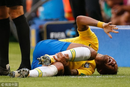 内马尔在比赛中图库倒地 在俄罗斯,内马尔4场比赛踢满360分钟,24次射门、12次射正都位居所以球员之首,同时,巴西前锋也以23次被侵犯排名榜首,而排名第2、3位的梅西、C罗分别只被侵犯15次、13次,这显示了对手在防守时对这三名球员,尤其是对内马尔的重视。