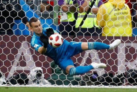 面对C罗领衔的葡萄牙队,乌拉圭队前锋卡瓦尼站了出来,他在这场激烈的比赛中梅开二度,两个进球都非常精彩,最终他帮助球队2-1取胜晋级八强。与姆巴佩一样,卡瓦尼在小组赛并没有多少发挥,只打进了1个进球。卡瓦尼在苏亚雷斯身边发挥出了非常高的水平,苏亚雷斯被对手重点盯防,卡瓦尼就承担起了进球的重任。接下来八强赛对阵法国,卡瓦尼是乌拉圭破门得分更进一步的最大希望。 阿金费耶夫(俄罗斯)