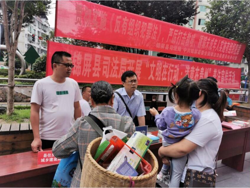 法讯网讯(通讯员 姜萍)6月6日上午,锦屏县司法局在三江镇天马广场开展了以“共建清洁美丽世界”为主题与“文明在行动·满意在贵州”相结合的法治宣传教育活动,进一步贯彻落实习近平法治思想,大力宣传倡导民法典中“民事主体从事民事活动,应当有利于节约资源、保护环境”的绿色环保原则,推动普法宣传教育深入人心。