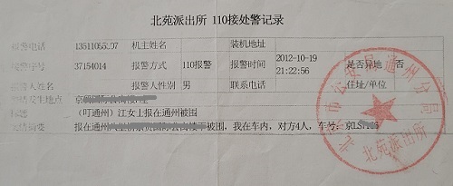 2012年报警记录反映姜某阳遇到4人拦截恐吓。