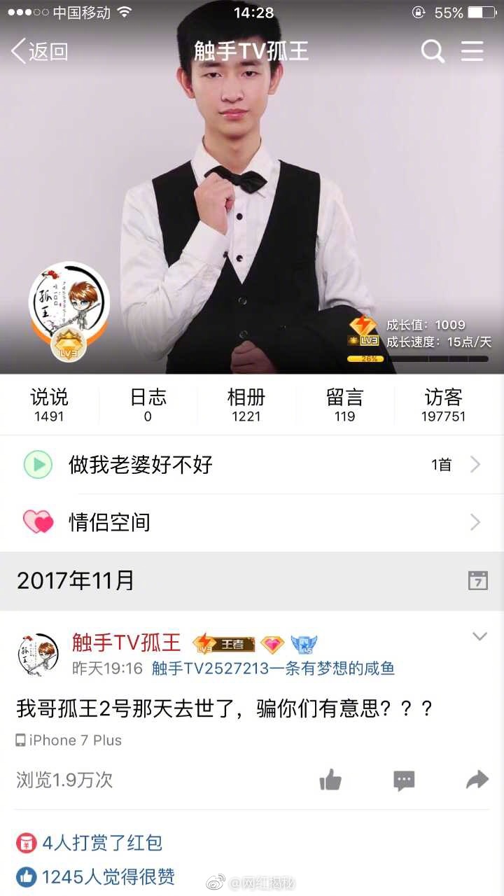 今天看触手刚发现的,主播孤王殿下猝死了,已经9天没直播了,今天刚发现评论说qq说他已经去世了。