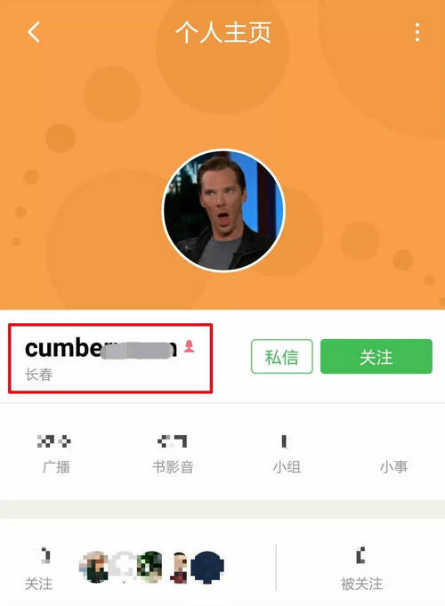 就算自己信息保密再好,还是可以通过访客记录和点赞信息,得到学校、居住地、年龄、习惯、兴趣等信息。 随意浏览一下,发现一大半相册照片都是关于卷福,常常晒手帐,晒电影票根,参与字幕组翻译工作。 到这一步时,这位×暖同学的身份特征开始清晰了: 性别......... √ 手机型号......... √ 偶像卷福(后面有用)......... √ 爱好......... √ 手机型号......... √ 微信也是相同的道理。 5:接下来,结合上面得到的信息,试试在其他APP上找到这个人吧。 为了便于展示,我选了几个在大学生群体中比较流行的社区:某博、某云音乐、某瓣。