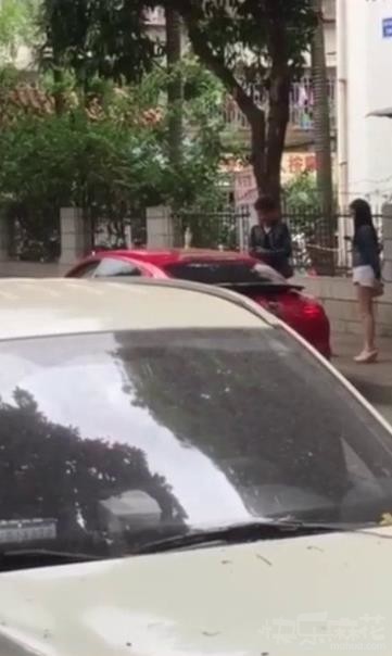 我在远处看到妹子拿走了他车顶上的一瓶绿茶,不知道啥意思,在线等!