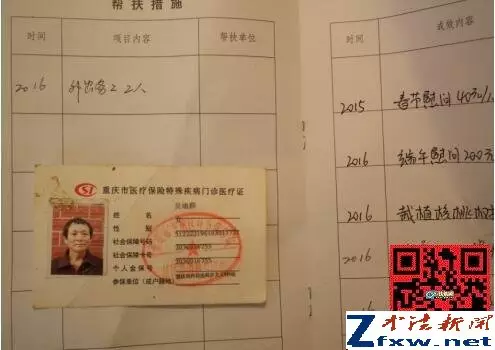 杨传习妻子吴地群的特殊疾病医疗证。 她说他们家二人缴纳医保与别人家一样,每年280元,只有今年的医保他们才交每人100元,比非贫困户少交40元。