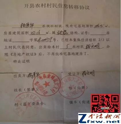 在杨家不知情的的情况下,杨传习获得这个村委房屋卖与程文明的协议(当时杨父还居住在该房),杨找到村委后才未得逞。