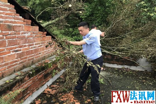江西兴国民警化身“伐木工”肢解压坏民房大树
