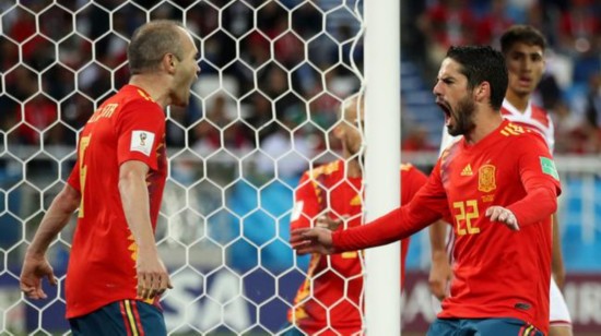 世界杯-小白将功补过助攻伊斯科 西班牙半场1-1