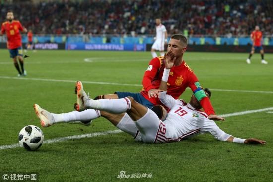 北京时间6月26日,世界杯B组小组赛,西班牙vs摩洛哥,下半场比赛,摩洛哥获得本场比赛第一个角球,角球直奔禁区开出,前锋恩内斯里力压西班牙队长拉莫斯将球顶进球门。