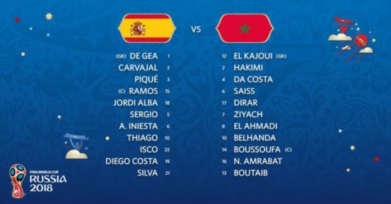 西班牙将战摩洛哥 北京时间6月26日02:00(加里宁格勒当地时间25日21:00),2018年世界杯B组末轮一场比赛在加里宁格勒球场展开角逐,西班牙2比2险平摩洛哥,布塔伊布先拔头筹,伊斯科扳平,西班牙门框救险,替补出场的恩内斯里第81分钟进球,同样替补出场的阿斯帕斯第91分钟再次扳平。西班牙因进球多优势力压葡萄牙获得小组头名,1/8决赛将战俄罗斯。 西班牙在1961年世界杯预选赛附加赛中双杀摩洛哥。西班牙近22场比赛保持不败,本场比赛保持不败将确保小组出线,蒂亚戈轮换卢卡斯出场。摩洛哥近15场世界杯赛事仅胜2场,但2场比赛均在小组赛末轮取胜,赛斯轮换贝纳蒂亚出场。 提前出局的摩洛哥并未消极放弃比赛。N-阿姆拉巴特对拉莫斯犯规险些引发冲突。随后卡瓦哈尔回传失误,皮克双腿飞铲布塔伊布又引来摩洛哥球员的激烈抗议。摩洛哥第14分钟取得领先,拉莫斯和伊涅斯塔后场让球失误,布塔伊布单刀突入禁区内14码处推射,皮球从德赫亚双腿间穿过入网。这是摩洛哥自1998年以来的首粒世界杯进球。