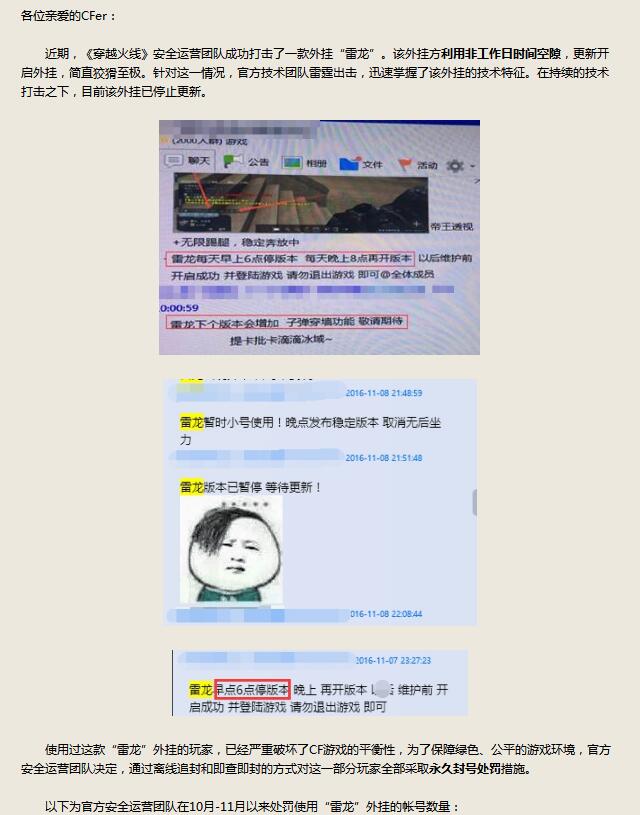 ***B腾讯再次发公告成功打击雷龙外挂