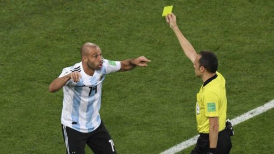 体坛+记者秦臻报道 在面对尼日利亚的比赛中,马斯切拉诺在下半场49分钟得到裁判的一张黄牌,阿根廷人也凭借这一张黄牌,在世界杯得黄牌数最多的历史中,追平巴西人卡福并列第一。