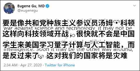 | (文/观察者网 郭涵)26日,曾率先散布“新冠病毒人为泄露”阴谋论、叫嚣就疫情向中国索赔的美国反华议员汤姆·科顿(Tom Cotton),宣称应禁止中国留学生赴美学习理工科,理由竟是中国“试图从美国偷走新冠病毒疫苗”。 他一边抹黑中国“释放病毒”,一边又空口无凭地指责中国“想赶在全世界前面率先找到疫苗、作为筹码”。此外,科顿还认为中国赴美留学生只能选文科,比如“学习莎士比亚的著作和《联邦党人文集》,而不是量子计算与人工智能。” 值得一提的是,近日美国共和党被曝发布“谎话红皮书”,就特朗普政府抗疫不力,要求议员统一口径“甩锅中国”。相关文件的作者就是科顿的顾问,共和党资深战略师布雷特·奥唐纳。 视频截图在26日早上的福克斯新闻节目中,阿肯色州共和党参议员科顿继续就美国新冠疫情“甩锅”,抹黑中国“将病毒释放到全世界”,如今又“试图从美国偷走新冠病毒疫苗”。 他以所谓中国“窃取”美国知识产权为幌子,在毫无证据的情况下宣称,自己“毫不怀疑中国情报部门正积极从美国‘偷窃’疫苗相关的知识产权”,并恶毒揣测中国“想成为第一个找到有效药与疫苗的国家,作为与全世界谈判的筹码。” 他污蔑赴美中国留学生“抢走美国人的工作、偷窃知识产权,设计可以用来攻击美国人民的武器设施”。美国大学“训练了这么多中国的精英学子”是“丑闻”。为此,科顿称应重新审视向中国发放学生签证的政策,要求禁止中国学生选修研究生层面的理科、工科专业,而只能选文科。 “中国学生想来的话就应该选修莎士比亚的著作和《联邦党人文集》,这就是他们应该从美国学习的,而不是量子计算与人工智能。” 早在1月底,科顿就率先散布“武汉病毒研究所泄露新冠病毒”的阴谋论,被哈佛大学流行病学副教授迈克·米纳等多名学者斥为“极其荒谬”。4月23日,世界卫生组织也再度强调,所有已知证据表明,新冠病毒源自自然界动物,而非人为操纵或由实验室合成。 《赫芬顿邮报》反驳科顿散播阴谋论4月16日,科顿又与共和党议员众议员丹·克伦肖发起提案,咬定中国应为美国暴发疫情负责,欲鼓动美国公民把中国政府告上联邦法院,赔偿美国人的生命财产损失。 美国政治新闻网站“Politico”24日报道,共和党参议院委员会给党内各竞选阵营发送了一份57页的备忘录,支招他们回避替特朗普政府的抗疫表现辩护,而是统一口径“甩锅”中国。这表明共和党人计划把中国设置为2020年总统选举的核心话题。 中国外交部发言人华春莹在社交媒体上转载相关报道值得一提的是,该备忘录的作者共和党资深战略师布雷特·奥唐纳,此前曾担任过科顿的顾问。 社交媒体上,有美国网友直接抨击科顿的言论是种族歧视,并认为这种限制中国留学生的做法会适得其反。还有网友对科顿建议来美国学习莎士比亚感到困惑,讽刺他可能不知道莎士比亚来自英国。 ![]() 图自:社交媒体截至当地时间26日下午,美国累计确诊新冠肺炎963168例,较前一日新增30118例。累计死亡54614例,较前一日新增1223例。 |