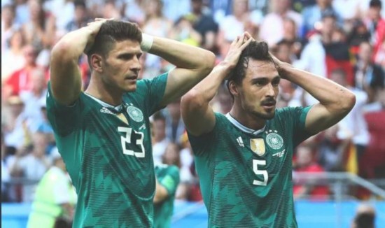 德国小组赛首战就爆冷0-1输给墨西哥,第二站瑞典艰难读秒2-1绝杀,在只能取胜才能晋级的最后一轮,德国最终0-2输给韩国队。最终,卫冕冠军德国也没有逃脱世界杯冠军魔咒。