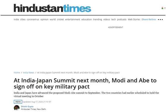 | 印媒:印日下月将举行领导人峰会,签署重要军事协议。 印度要联合日本,对抗中国?综合《印度斯坦时报》、印度报业托拉斯等多家印媒报道,印度总理莫迪将与日本首相安倍晋三在下月初举行领导人峰会。报道称,预计两国领导人届时将签署一项重要的军事协议——物品役务相互提供协定(ACSA),以及讨论将部分日本企业的生产线转移至印度的可能性。虽然印媒报道并未直接点名印日此举系针对中国,但在报道中均称,此次峰会正值中印边境爆发冲突,和中日就钓鱼岛海域争议升温之际。 ![]() 《印度斯坦时报》:在下个月的印日领导人峰会上,莫迪和安倍将签署重要军事协议 印度报业托拉斯18日援引知情人士的话说,此次峰会将以视频的形式展开。《印度斯坦时报》则援引印方官员的话称,两国早些时候曾考虑在10月举行会议的可能性,但随后决定将会议提前至9月10日进行。这一峰会原计划于去年12月15日至17日在印度阿萨姆邦高哈蒂举行,但由于当时发生了因莫迪政府推行《公民身份法》修正案而引发的抗议浪潮,因此被迫推迟。 ![]() 《印度斯坦时报》称,此次峰会正是在中印边境爆发冲突,以及中日就钓鱼岛海域争议再次升温的背景之下。报道援引印方外交官员的话说,印日领导人在会谈中除将讨论上述问题外,还会就南海问题进行讨论,并对美日澳印所谓“四国联盟”概念加以巩固。 关于报道中提及的军事协议,印度报业托拉斯介绍说,该协议(ACSA)将允许两国军队使用对方的军事基地和设施进行维修和物资补给,有助于扩大全面合作。此外,印日双方预计还将全面审视双边防务关系,包括日本向印度供应US-2水上飞机这一长期悬而未决的问题。《印度斯坦时报》则称,印度此前已与“四国联盟”另外两个成员国澳大利亚和美国签署了相应的军事合作协议。 ![]() 印度报业托拉斯:印日领导人峰会可能于下月举行 《印度斯坦时报》称,印方官员表示,日印领导人还将对印太地区及面临来自中国的“挑战”进行深入沟通。此外,他们希望通过此次峰会加强日印两国经济合作,以达到实现部分日本企业将生产线迁移至印度的目的,以及让日本参与到印度安达曼-尼科巴群岛港口的基础设施建设中。 自印度蓄意挑衅致中印边境爆发冲突后,印度一直对华动作不断。除印度政府宣布禁用中国多款应用程序(App)外,全印贸易商联合会日前还致信印度电子和信息技术部部长普拉萨德,要求政府正式将华为和中兴公司排除在印度5G网络建设之外。此外,据路透社报道,印度税务部门11日称,以调查洗钱和经营非法地下钱庄为名,突击搜查了几家在印中资企业实体及其关联公司。 而在8月17日的中国外交部例行记者会上,被问及“印度总理莫迪在周末(独立日)发表的讲话中表示要建立强大的军队,并称印领土主权至高无上。中方对此有何回应”时,外交部发言人赵立坚表示,我们注意到莫迪总理的讲话。 赵立坚称,作为两个10亿级人口规模的相邻新兴大国,中印关系发展不仅造福两国和两国人民,也将为本地区和世界的和平繁荣增添稳定性和正能量。中印双方相互尊重、相互支持是正道,符合两国的长远利益。中方愿继续同印方一道,增进政治互信,妥善管控分歧,加强务实合作,共同维护双边关系大局。 |
