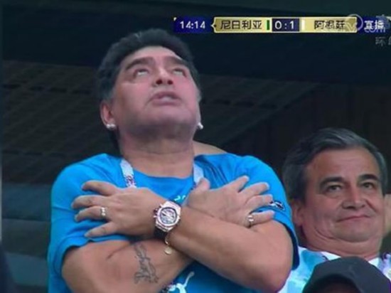 在球场边,马拉多纳也在为阿根廷足球的新王祷告。奋斗到第3场比赛,梅西终于如愿收获了进球。这位阿根廷命运多舛的当代球王,为了祖国的胜利早已付出了自己的一切。