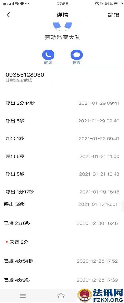 给古浪县劳动监察大队9次电话