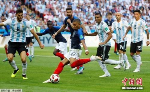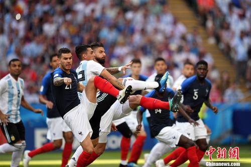 中新社记者 富田 摄"> 小组赛,法国队仅取得3粒进球,进攻端表现差强人意。中新社记者 富田 摄 然而,小组赛面对实力远不如自己的球队,法国队三场比赛仅取得3粒进球,尽管仍然以小组第一的身份晋级,但在10.4亿欧元的世界杯最贵身价光环下,这样的进攻端表现,无疑让德尚的球队受到更多质疑。 1/8决赛面对梅西和阿根廷队,法国队的进攻天赋终于被完全释放。单场4粒进球,甚至比小组赛的总进球数还要多一粒。除了格列兹曼罚进的点球以外,其余三粒全部属于运动战进球,法国队年轻的锋线,彻底将潘帕斯雄鹰年迈的后防甩在身后。 看过1998年世界杯的人,很容易爱上优雅的法国队,如今的高卢雄鸡则充斥着青春、激情和荷尔蒙。诸多世界足坛名宿流露出对这支球队的喜爱,20年前带领法国队夺得队史首座大力神杯的名帅雅凯甚至表示:“法国队具备一切夺冠的可能因素。”
