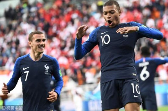 法国队迎来了世界杯小组赛首个对手澳大利亚。年轻的法国人在场上显得一点兴奋,在经历了一个闷热的上半场后,法国队凭借格列兹曼的点球和博格巴的挑射,法国队艰难2-1战胜澳大利亚,收获3分。