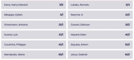 世界杯金靴最新赔率,凯恩仍在第一:
