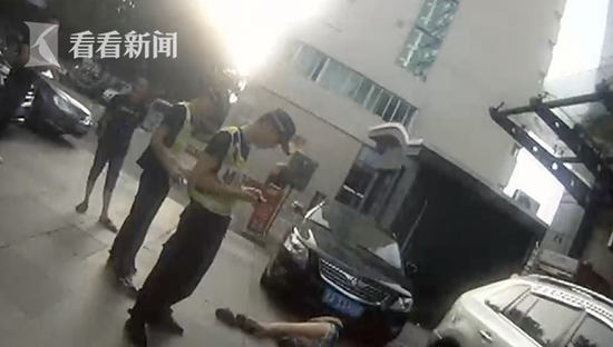 6月26号早上6点08分,浙江杭州凯旋派出所民警巡逻至凤起东路一家银行门口,见到一个女孩躺在汽车下面一动不动。女孩的人字拖甩到一边,背包压在身下。民警担心女孩身体不舒服,尝试把她叫醒。