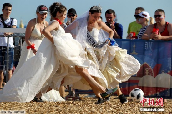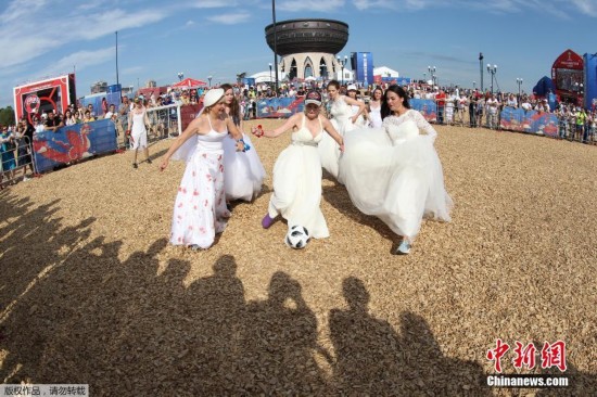 当婚纱遇见足球 喀山迎来“新娘世界杯”