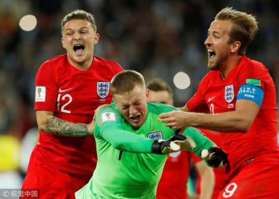 凯恩庆祝进球 【1】凯恩点球是世界杯史上首次由托特纳姆热刺队员攻破阿森纳门将十指关。 【3】凯恩成为首位个人前3场世界杯均有进球的英格兰球员。个人前3场世界杯进球排行榜:柯奇士9球;盖德·穆勒7球;于吉(瑞士)/方丹/贝利/萨连科/凯恩6球。 【3】英格兰是本届世界杯获得点球最多的球队(3)。 【3】凯恩成为世界杯史上第5位罚进3+个点球的球员,也是1994年斯托伊奇科夫之后首位。 【3】米纳成为2002年克洛泽(5)之后首位单届世界杯顶进3+球的球员,1962年瓦瓦之后首位单届世界杯顶进3+球的南美球员,继布莱特纳(1974)和布雷默(1990)之后,第3位单届世界杯打进3球的后卫。 【3】连续3场世界杯进球的哥伦比亚球员:哈梅斯·罗德里格斯(2014);米纳(2018)。哥伦比亚球员世界杯进球榜:哈梅斯·罗德里格斯6球;米纳3球。 【6】凯恩成为1939年汤米·劳顿之后首位代表英格兰连续6场破门的球员。