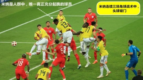 从高清图可以看到,米纳是角球进攻中,唯一充分起跳的球员 如果说英格兰的角球战术中,关键点是中锋凯恩和中卫斯通斯的话。那么哥伦比亚这边,角球战术的重点就是中卫米纳和中锋法尔考。由于定位球战术下,球员的角色相对模糊,中卫和中锋是相等的概念,这也使得米纳连续3场比赛通过角球战术破门。 从高清图上可以看到,当时哥伦比亚6名球员成直线在中路位置,真正起跳的,是身高最高的米纳。这种战术的目的,就是要限制防守人起跳,最终利用高点破局。 什么!0-2了?上费莱尼,给我砸高球! 更为经典的故事,发生在日本与比利时的比赛之中。当时日本队通过极为精彩的肋部防守和反击进攻,一度赢得了2-0的领先优势。不过随后比利时放弃了默滕斯、阿扎尔双前腰结合两侧翼卫打肋部的思路,直接换上大个子的费莱尼和查德利,进行高空轰炸。