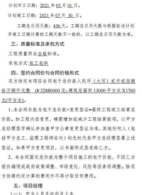 双方协定本项目合同包干总价款人民币(大写)贰仟贰佰捌拾万捌仟元整(建筑总面积13000平方米x1760元/平方米)。