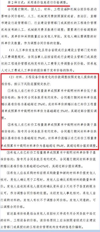 合同对材料、工程设备价格变化的价款调整也有具体约定。