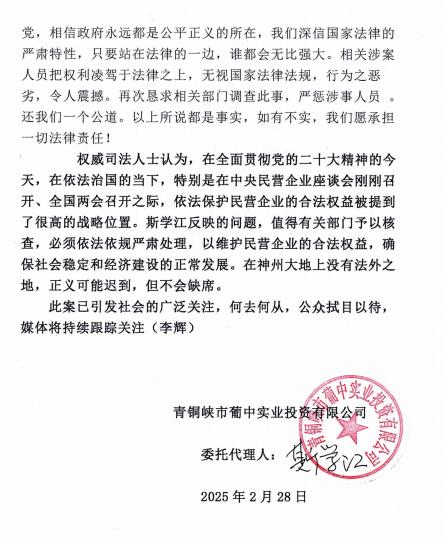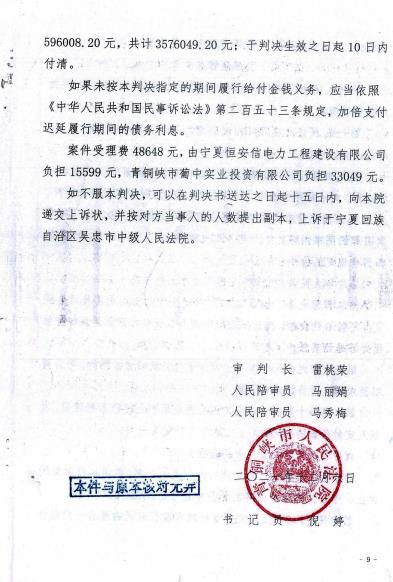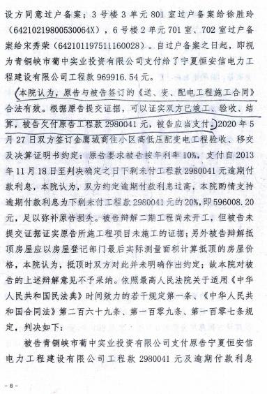 宁夏青铜峡市一起因建筑施工引起的普通民事纠纷拖至12年未果 举世瞩目的 2025 年全国两会,建筑施工领域纠纷成为两会的热点议题。此时此刻,宁夏青铜峡市葡中实业投资有限公司(简称葡中公司)实际控制人斯学江向中央媒体反映,并向最高人民检察院等司法机构提出申诉:2013 年该公司与宁夏恒安信电力建设有限公司(简称恒安信公司)本是一起因建筑施工引起的普通民事纠纷,但因当地职能部门未能秉公办理,造成长达 12 年的纠纷至今未得到妥善处理。斯学江要求追偿对本人及葡中公司造成的重大经济损失。 斯学江向媒体诉说了纠纷的来龙去脉。 就这起因建筑施工引起的普通民事纠纷,几年前受葡中公司委托的斯学江提出申诉要求:撤销青铜峡市公安局青公(经)不立字(2022)10036 号不予立案通知书、青铜峡市公安局青公刑复字(2022)006 号刑事复议决定书、青铜峡市公安局《青公(信访)不受字(2023)002 号)不受理信访事项告知书》、青铜峡市公安局《青公(信访)不受字(2023)004 号不受理信访事项告知书》、吴忠市公安局《吴公(法)刑复核字(2023)第 10002 号刑事复核决定书》、吴忠市人民检察院《吴检民监(2023)4 号不支持监督申请决定书》。同时,斯学江要求青铜峡市公安局、吴忠市公安局、吴忠市人民检察院对于葡中公司控告恒安信公司虚假诉讼案、伪造公章案予以立案,追究恒安信公司虚假诉讼罪、伪造公章罪的刑事责任,并要求对公章真伪进行鉴定。 2013 年 10 月 30 日,葡中公司与恒安信公司就青铜峡市南市场改造工程 10KKV 高低压配变电安装工程,签订了施工委托书。但之后在履行委托书协议中,双方产生了经济纠纷,直至 2021 年,恒安信公司把葡中公司告上法庭。葡中公司又反诉了恒安信公司。 2021年12月6日宁夏青铜峡市人民法院民事判决书部分影印件 几年前受葡中公司委托的斯学江申诉请求事项的具体事实和理由如下: 一、斯学江认为根据法规恒安信公司构成虚假诉讼罪、伪造公章罪。 根据《关于进一步加强虚假诉讼犯罪惩治工作的意见》法发(2021)10 号,恒安信公司构成虚假诉讼罪、伪造公章罪,事实清楚,证据确凿,根据审判法官说“恒安信法定代表人宋建军在诉讼期间,天天到法院吵闹,要住在法院不走”。申请人的控告符合公安部门的立案条件。 1.送、变、配电工程施工合同第一条、工程概况 2.工程内容 :(1)项目一期工程安装 10KV 高压开闭所一座,安装箱式变电站 3200KVA,敷设高低压电力电缆及安装分户计量表(不含小区路灯及电缆线,不含备用电源发电发电机、发电机相关的配套设备及发电机进出线电缆)。(2)本合同含项目二期工程,待二期条件成熟后,施工时间双方另行商议。9、工程施工费用:工程总费用为:肆佰叁拾万元(4300000.00)付工程预算清单,此费用 30%以房款抵顶工程款,工程款顶房部分乙方不向甲方开具工程发票。 2.涉案工程根据施工合同 2、工程内容;9 的约定施工合同总承包价为人民币:4300000 元,明确包括一期、二期总工程款。根据恒安信公司在一期里面实际施工的工程量,只是实际施工按照合同约定的 2.工作内容(1)约定的工程内容。 3.根据恒安信公司给法庭提交的证据,只完成了合同中约定的一期工作量,恒安信公司提供的证据,工程竣工验收证书(工作概况:新建安装金鹰城商住小区一、二期 10KV 高压开闭所一座,安装箱式变电站 3 台,高压电缆敷设,低压电缆敷设至计量箱处。安装住宅计量配电箱及表计,敷设合同外新增项目一期、二期自发电机至电梯机房、消防及水泵电力电缆,安装双电源配电箱及桥架,商网电表箱及商户入户电缆)。根据设计院一期容量 2860KVA,二期容量 2000KVA。也证明了只完成了一期,按照合同约定的第一条 2、工作内容(1)。要安装4台变压器(3200KVA),提供(工程竣工验收证书、工程竣工移交证书)的证据里安装 3 台,少安装一台变压器。 但是恒安信公司提供的验收证明,可以证明按合同约定完成了一期工程内容,难道在验收、移交时,实际施工了3台还是4台都数不清楚吗?还有验收、移交时二期拆迁没有完成,根本没有实施,建设单位参加验收人员明知道没有施工,还要给恒安信公司盖章的可能吗?恰恰相反,证明了恒安信公司虚构二期施工的事实。二期并未施工,私刻葡中公司公章,给法庭提供伪造证据。却构成虚假诉讼要件,提供虚假事实和证据,构成虚假诉讼罪。伪造青铜峡市葡中实业投资有限公司公章,制作虚假证据,构成伪造公章罪。 二、恒安公司虚假诉讼、伪造公章获取非法利益 首先,控告人从青铜峡市供电公司调取了小坝南市场项目《委托书》《小坝南市场配电线路图》《施工委托书》《施工组织方设计(方案)报审表》《工程材料/构配件/设备报审表》《工程竣工验收证明书》《工程竣工移交证明书》等材料(详见目录),上述材料能够证实小坝南市场项目一期总用电量为 2800KVA,共计4台变压器。 恒安公司在庭审时递交了,2013年11月8日《工程量变更及价款确认单》,2013 年 11 月 17 日《工程竣工验收证书》《工程竣工移交证书》。以及2020年5月27日小坝南市场改造项目二期高低压配电工程竣工验收、移交及决算书,2020 年 6 月 23 日工程款支付证等材料(详见附件),上述材料足以证明恒安公司在庭审时提供的证据是伪造的,与青铜峡市供电公司档案室调取的材料在日期、格式、数量等方面均不相同。 需要