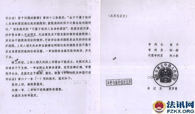▲图为:民事二审裁定 2014年荣昌县人民法院以超过诉讼法定期限且无正当理由为由,作出行政裁定:驳回起诉。二审法院也是驳回上诉、维持原裁定。